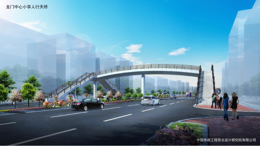龍門中心小學(xué)人行天橋位于羅龍西路龍門中心小學(xué)西側(cè)約80米,主梁采用鋼箱型連續(xù)梁,腹板為圓弧形,主梁全長33.8米,寬4米。梯道坡度1:2,長16.9米、寬米,中間設(shè)置緩步平臺。總投資約400萬元。
