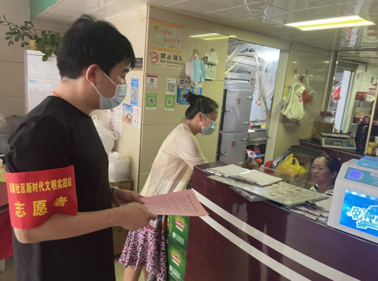 八月末,天氣炎熱,市政集團的志愿者們身著紅馬甲,不畏臟、不怕累,各司其職,分時段分批次在蓮新社區(qū)范圍內(nèi)開展創(chuàng)城活動,其中清潔崗的志愿者們帶著夾子、掃帚、垃圾袋等清掃工具,對街道路面的紙屑、塑料袋、煙頭等生活垃圾進行清掃,將亂停亂放的自行車整齊的排列在停車位上,使得街道整潔一新。宣傳崗的志愿者們走進商鋪,發(fā)放文明宣傳標語,動員商鋪店主一起,注意門前三包,在平時營業(yè)工作中,遇到不文明行為時,進行及時規(guī)勸,讓市民自覺遵守,規(guī)范自身行為,積極踐行“共創(chuàng)共享”的創(chuàng)城理念,共同為創(chuàng)建文明城市出一份力。交通崗的志愿者們通過積極引導道路交通,向過往行人科普創(chuàng)城溫馨小知識,加強城市文明建設。